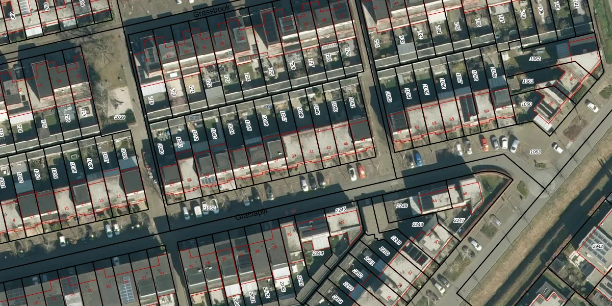 Grastapijt 41 is gelegen op kadastraal perceel STR03G1048. Deze kadastrale aanduiding is uniek en wordt gebruikt door het Kadaster om eigendomsrechten en andere zakelijke rechten vast te leggen. Het perceel maakt onderdeel uit van de kadastrale gemeente Strijp.