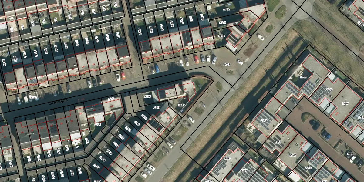 Grastapijt 46 is gelegen op kadastraal perceel STR03G2247. Deze kadastrale aanduiding is uniek en wordt gebruikt door het Kadaster om eigendomsrechten en andere zakelijke rechten vast te leggen. Het perceel maakt onderdeel uit van de kadastrale gemeente Strijp.