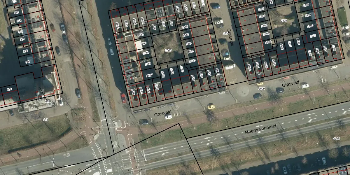 Grasveld 34 is gelegen op kadastraal perceel STR03G1551. Deze kadastrale aanduiding is uniek en wordt gebruikt door het Kadaster om eigendomsrechten en andere zakelijke rechten vast te leggen. Het perceel maakt onderdeel uit van de kadastrale gemeente Strijp.