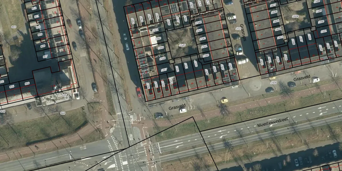 Het perceel waarop Grasveld 38 staat heeft een oppervlakte van 65 m². Dit is een klein perceel. De perceeloppervlakte wordt geregistreerd door het Kadaster. Gedetailleerde informatie over de maten van dit perceel kunt u vinden in het rapport Kadastrale kaart met maatvoering van Grasveld 38.