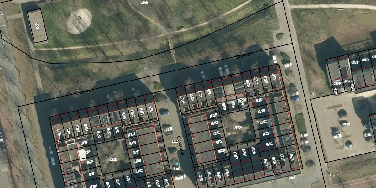 Het perceel waarop Grasveld 80 staat heeft een oppervlakte van 65 m². Dit is een klein perceel. De perceeloppervlakte wordt geregistreerd door het Kadaster. Gedetailleerde informatie over de maten van dit perceel kunt u vinden in het rapport Kadastrale kaart met maatvoering van Grasveld 80.