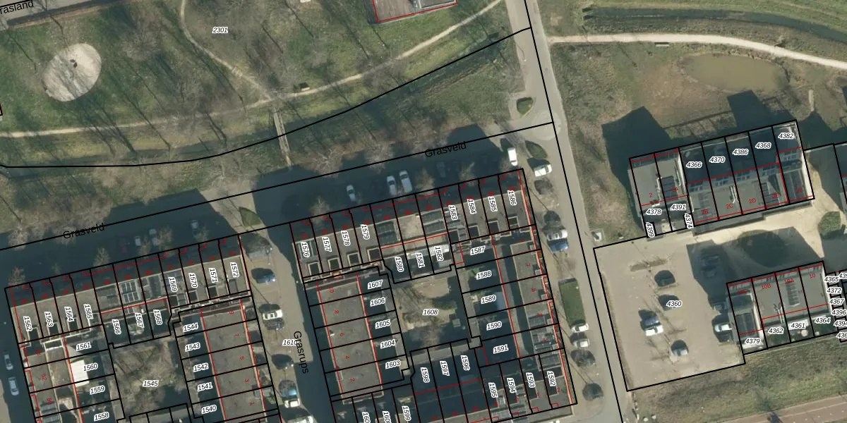 Grasveld 90 is gelegen op kadastraal perceel STR03G1582. Deze kadastrale aanduiding is uniek en wordt gebruikt door het Kadaster om eigendomsrechten en andere zakelijke rechten vast te leggen. Het perceel maakt onderdeel uit van de kadastrale gemeente Strijp.