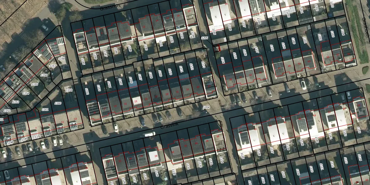 Grasvink 33 is gelegen op kadastraal perceel STR03G1171. Deze kadastrale aanduiding is uniek en wordt gebruikt door het Kadaster om eigendomsrechten en andere zakelijke rechten vast te leggen. Het perceel maakt onderdeel uit van de kadastrale gemeente Strijp.