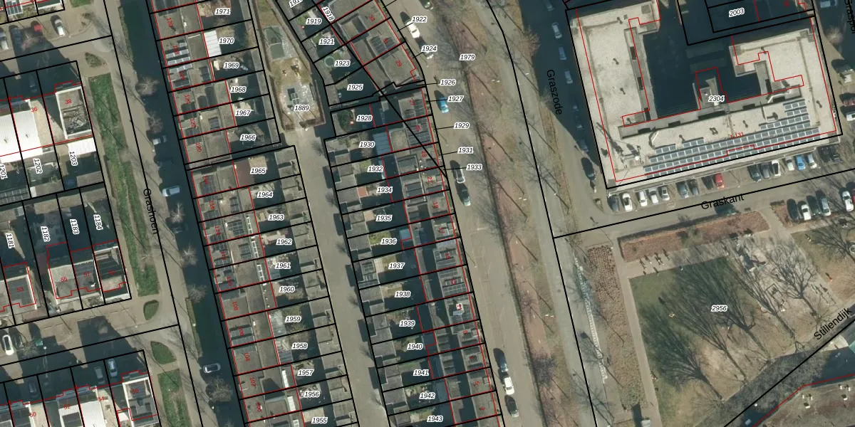 Gebruik de zoekbalk of klik op een perceel voor informatie over de adressen binnen dit perceel.