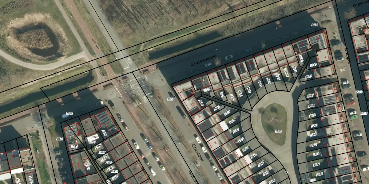 Gebruik de zoekbalk of klik op een perceel voor informatie over de adressen binnen dit perceel.