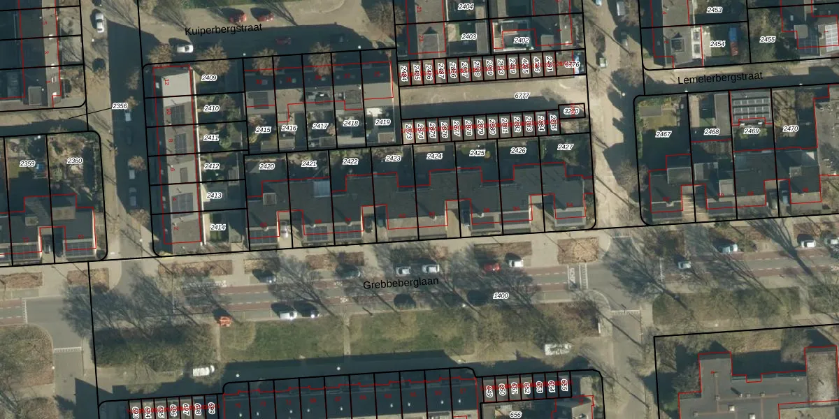 Gebruik de zoekbalk of klik op een perceel voor informatie over de adressen binnen dit perceel.