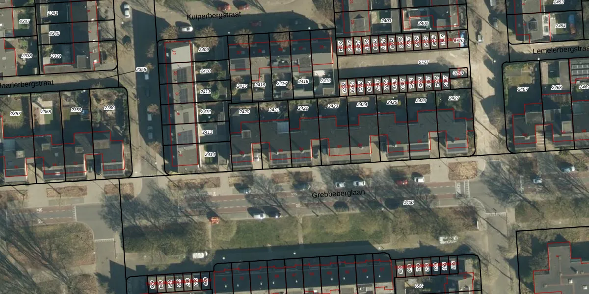 Grebbeberglaan 64 is gelegen op kadastraal perceel WSL01W2422. Deze kadastrale aanduiding is uniek en wordt gebruikt door het Kadaster om eigendomsrechten en andere zakelijke rechten vast te leggen. Het perceel maakt onderdeel uit van de kadastrale gemeente Woensel.