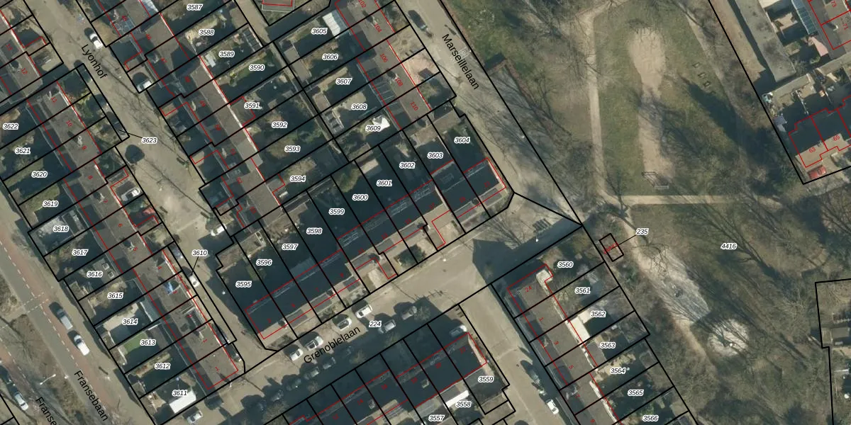 Het perceel waarop Grenoblelaan 17 staat heeft een oppervlakte van 199 m². Dit is een middelgroot perceel. De perceeloppervlakte wordt geregistreerd door het Kadaster. Gedetailleerde informatie over de maten van dit perceel kunt u vinden in het rapport Kadastrale kaart met maatvoering van Grenoblelaan 17.