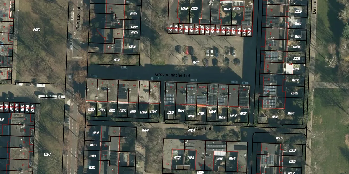 Grevenmacherhof 16 is gelegen op kadastraal perceel WSL01P1674. Deze kadastrale aanduiding is uniek en wordt gebruikt door het Kadaster om eigendomsrechten en andere zakelijke rechten vast te leggen. Het perceel maakt onderdeel uit van de kadastrale gemeente Woensel.