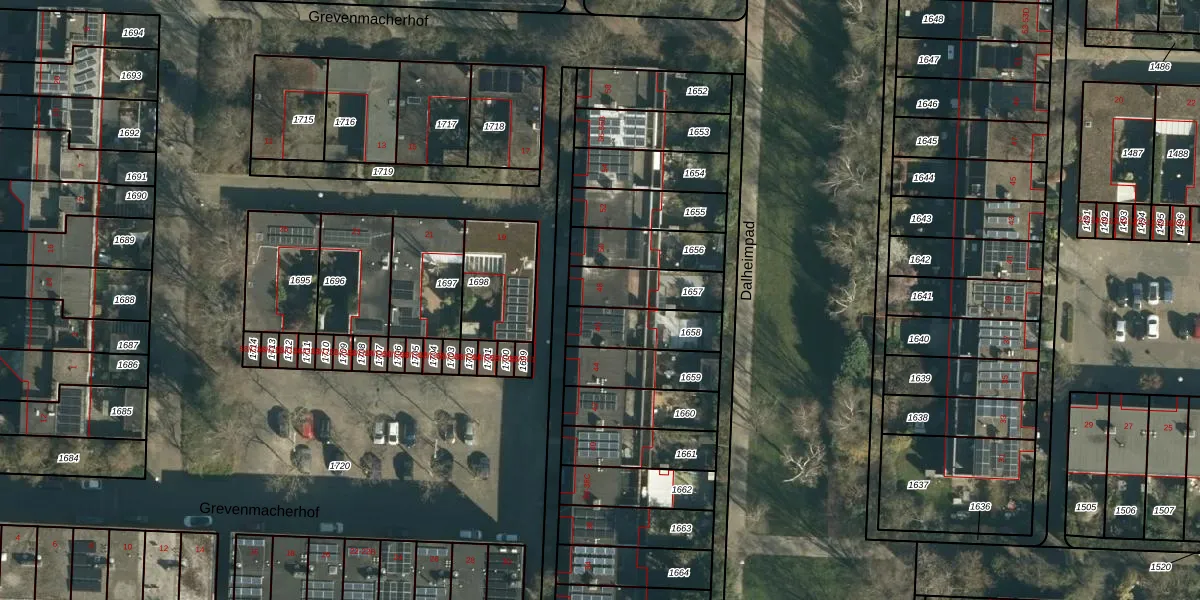 Het perceel waarop Grevenmacherhof 48 staat heeft een oppervlakte van 173 m². Dit is een middelgroot perceel. De perceeloppervlakte wordt geregistreerd door het Kadaster. Gedetailleerde informatie over de maten van dit perceel kunt u vinden in het rapport Kadastrale kaart met maatvoering van Grevenmacherhof 48.