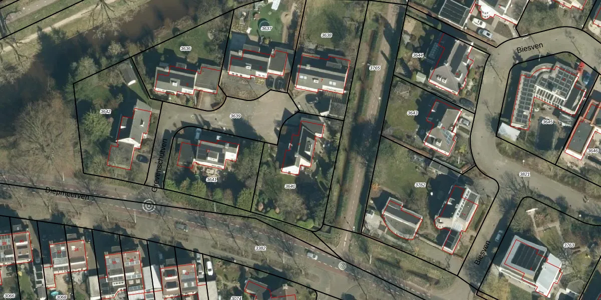 Grevenschutven 9 is gelegen op kadastraal perceel STM00F3640. Deze kadastrale aanduiding is uniek en wordt gebruikt door het Kadaster om eigendomsrechten en andere zakelijke rechten vast te leggen. Het perceel maakt onderdeel uit van de kadastrale gemeente Stratum.