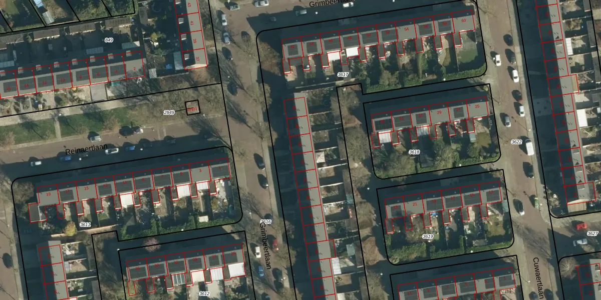 Grimbeertlaan 36 is gelegen op kadastraal perceel WSL01P3617. Deze kadastrale aanduiding is uniek en wordt gebruikt door het Kadaster om eigendomsrechten en andere zakelijke rechten vast te leggen. Het perceel maakt onderdeel uit van de kadastrale gemeente Woensel.