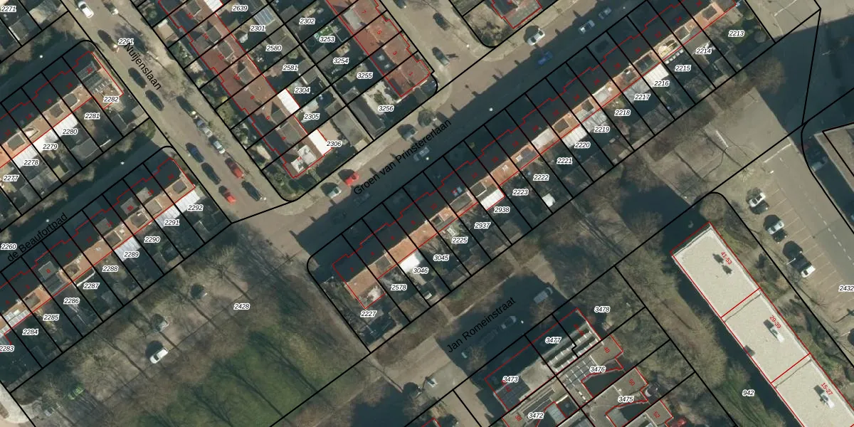 Groen van Prinstererlaan 10 is gelegen op kadastraal perceel WSL01P2225. Deze kadastrale aanduiding is uniek en wordt gebruikt door het Kadaster om eigendomsrechten en andere zakelijke rechten vast te leggen. Het perceel maakt onderdeel uit van de kadastrale gemeente Woensel.