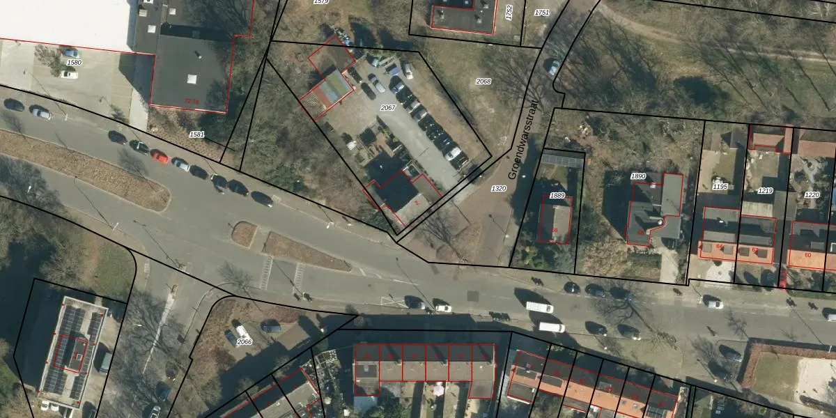 Het perceel waarop Groendwarsstraat 2 staat heeft een oppervlakte van 1315 m². Dit is een zeer groot perceel. De perceeloppervlakte wordt geregistreerd door het Kadaster. Gedetailleerde informatie over de maten van dit perceel kunt u vinden in het rapport Kadastrale kaart met maatvoering van Groendwarsstraat 2.