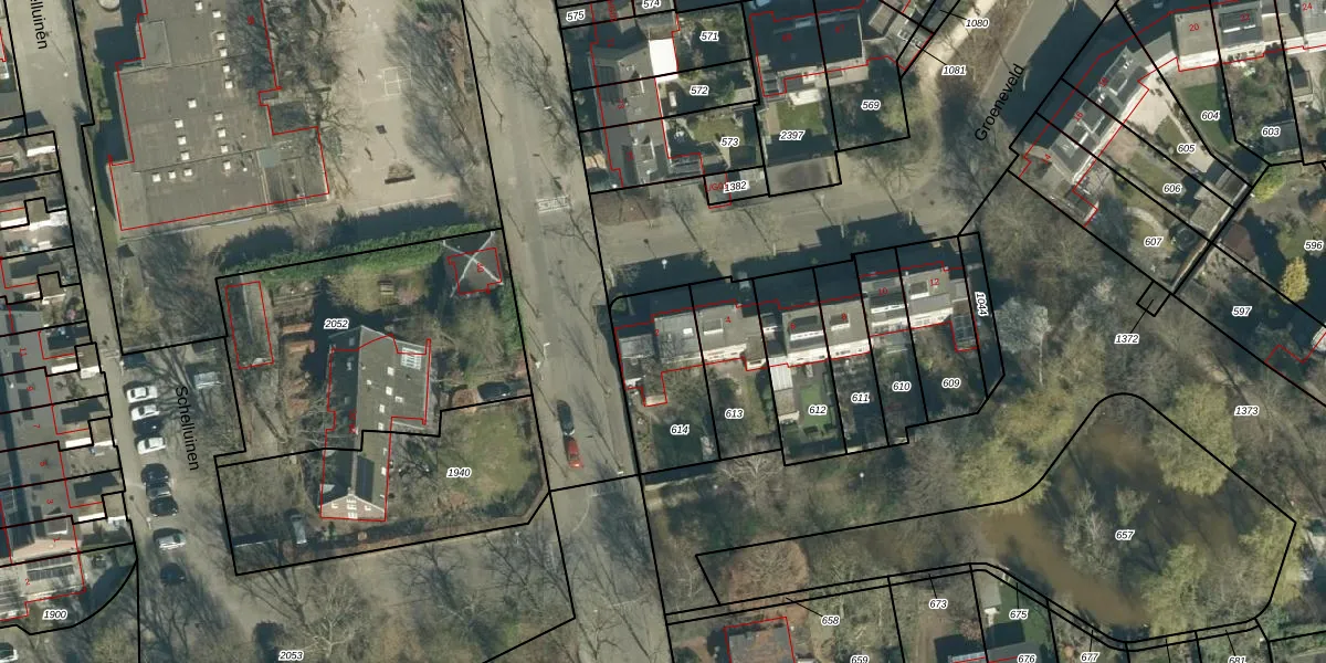 Het perceel waarop Groeneveld 2 staat heeft een oppervlakte van 335 m². Dit is een groot perceel. De perceeloppervlakte wordt geregistreerd door het Kadaster. Gedetailleerde informatie over de maten van dit perceel kunt u vinden in het rapport Kadastrale kaart met maatvoering van Groeneveld 2.