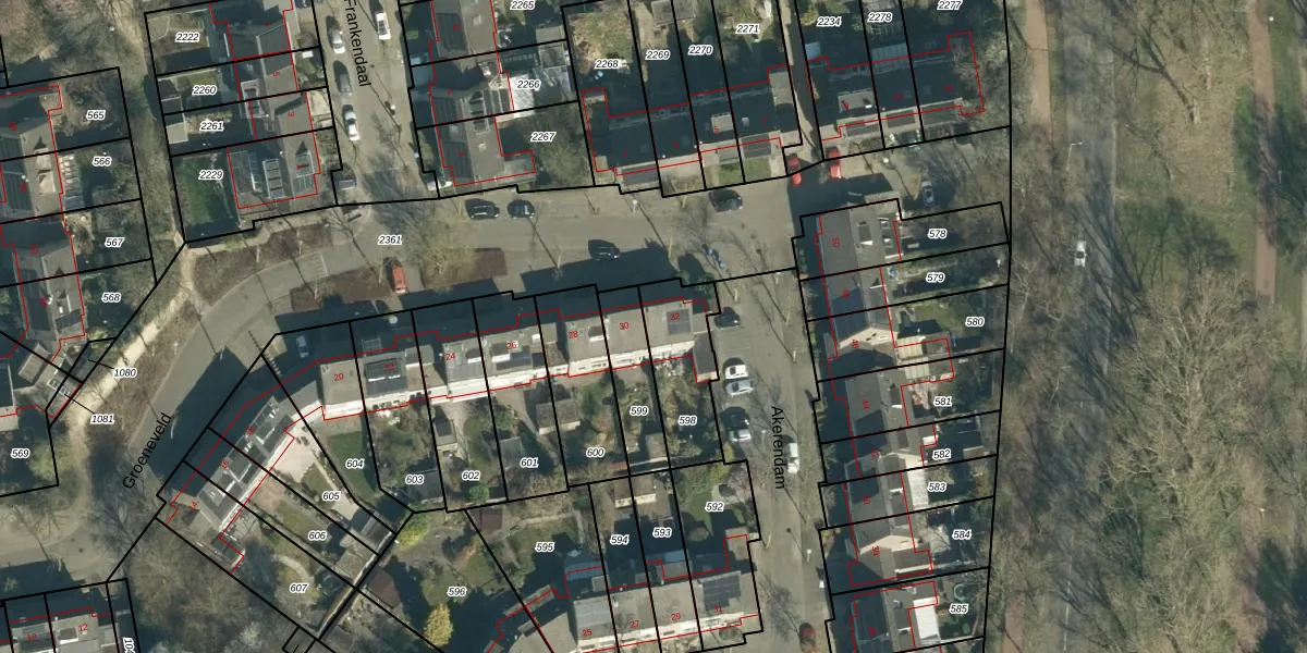 Gebruik de zoekbalk of klik op een perceel voor informatie over de adressen binnen dit perceel.