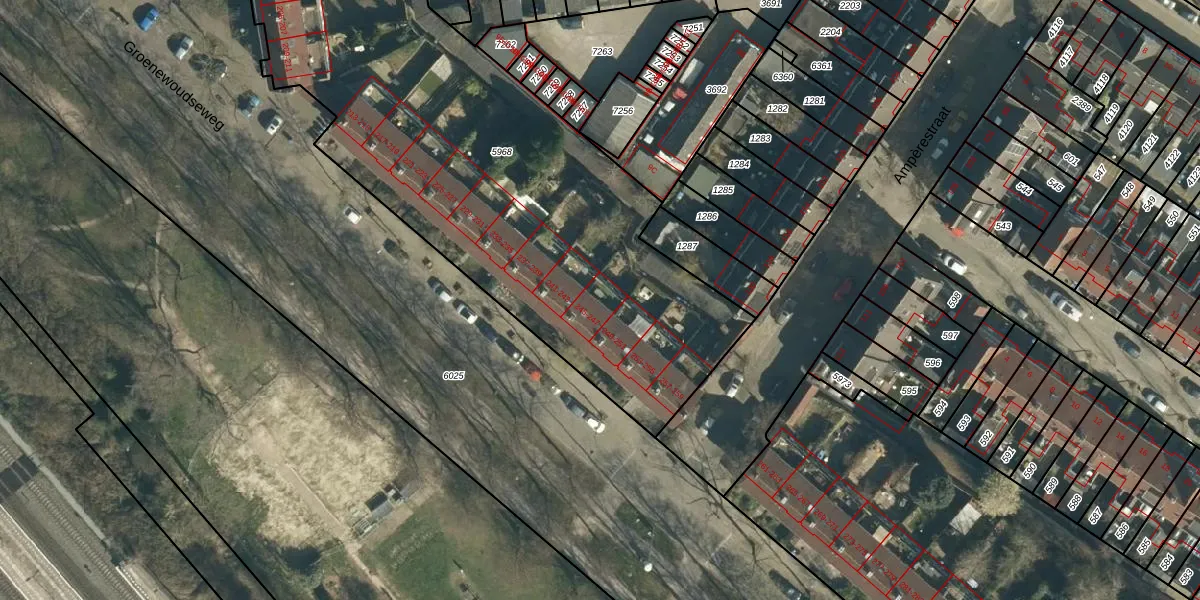 Het perceel waarop Groenewoudseweg 247 staat heeft een oppervlakte van 2935 m². Dit is een zeer groot perceel. De perceeloppervlakte wordt geregistreerd door het Kadaster. Gedetailleerde informatie over de maten van dit perceel kunt u vinden in het rapport Kadastrale kaart met maatvoering van Groenewoudseweg 247.