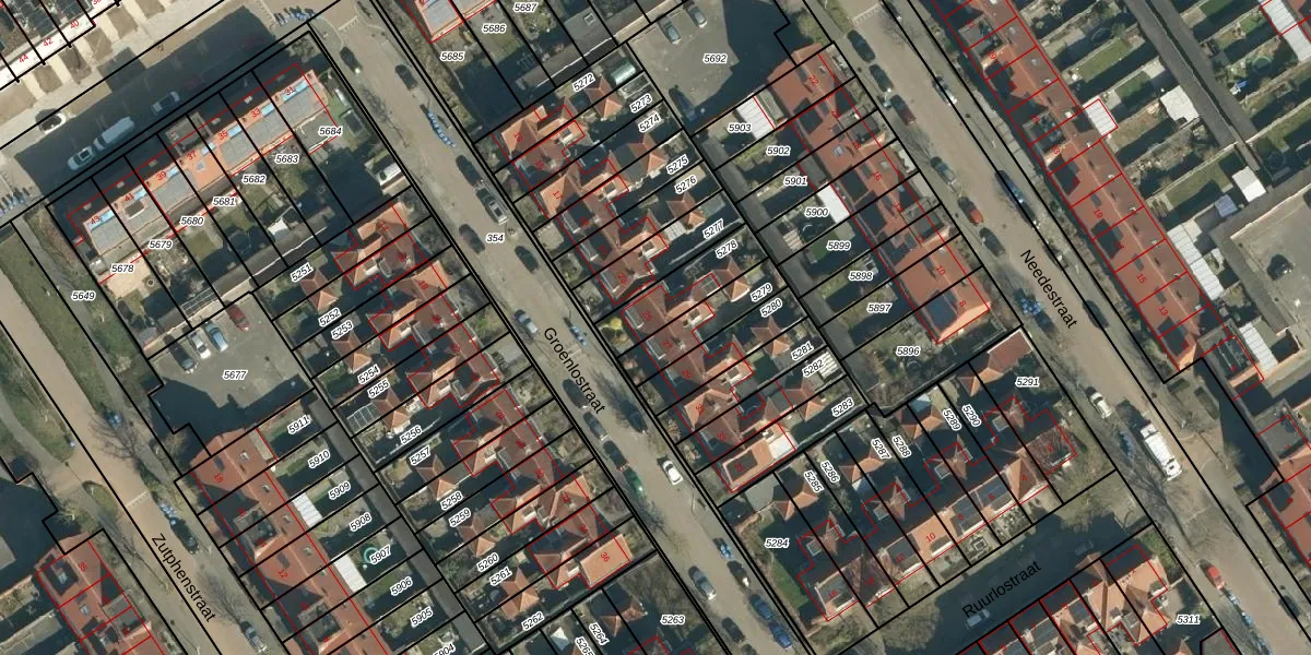 Het perceel waarop Groenlostraat 25 staat heeft een oppervlakte van 175 m². Dit is een middelgroot perceel. De perceeloppervlakte wordt geregistreerd door het Kadaster. Gedetailleerde informatie over de maten van dit perceel kunt u vinden in het rapport Kadastrale kaart met maatvoering van Groenlostraat 25.