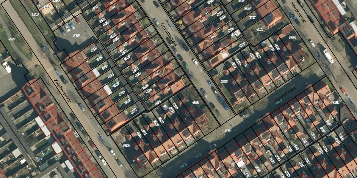 Het perceel waarop Groenlostraat 36 staat heeft een oppervlakte van 183 m². Dit is een middelgroot perceel. De perceeloppervlakte wordt geregistreerd door het Kadaster. Gedetailleerde informatie over de maten van dit perceel kunt u vinden in het rapport Kadastrale kaart met maatvoering van Groenlostraat 36.