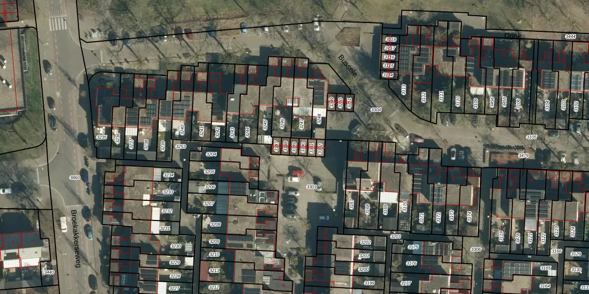 Gebruik de zoekbalk of klik op een perceel voor informatie over de adressen binnen dit perceel.