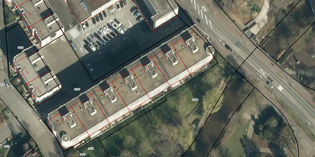 Het perceel waarop Groot Paradijs 53 staat heeft een oppervlakte van 4460 m². Dit is een zeer groot perceel. De perceeloppervlakte wordt geregistreerd door het Kadaster. Gedetailleerde informatie over de maten van dit perceel kunt u vinden in het rapport Kadastrale kaart met maatvoering van Groot Paradijs 53.