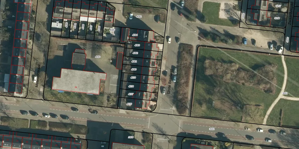 Gebruik de zoekbalk of klik op een perceel voor informatie over de adressen binnen dit perceel.