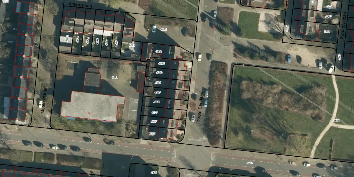 Grote Beerlaan 1-F is gelegen op kadastraal perceel WSL01C4081. Deze kadastrale aanduiding is uniek en wordt gebruikt door het Kadaster om eigendomsrechten en andere zakelijke rechten vast te leggen. Het perceel maakt onderdeel uit van de kadastrale gemeente Woensel.