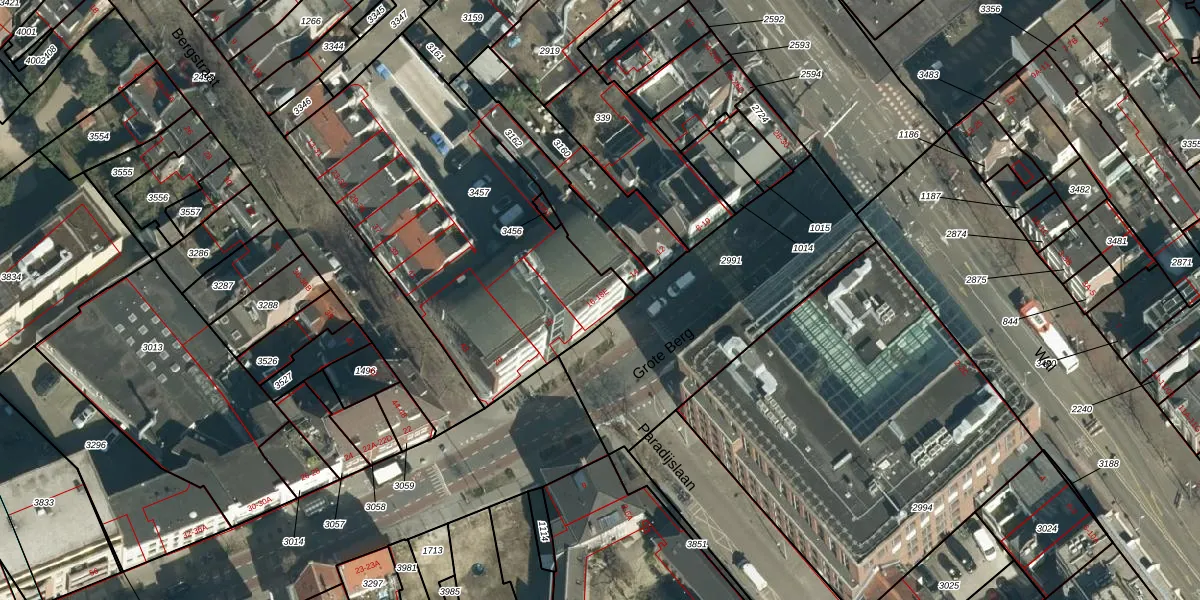 Het perceel waarop Grote Berg 16 staat heeft een oppervlakte van 1586 m². Dit is een zeer groot perceel. De perceeloppervlakte wordt geregistreerd door het Kadaster. Gedetailleerde informatie over de maten van dit perceel kunt u vinden in het rapport Kadastrale kaart met maatvoering van Grote Berg 16.