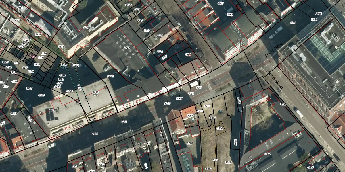 Het perceel waarop Grote Berg 26 staat heeft een oppervlakte van 86 m². Dit is een klein perceel. De perceeloppervlakte wordt geregistreerd door het Kadaster. Gedetailleerde informatie over de maten van dit perceel kunt u vinden in het rapport Kadastrale kaart met maatvoering van Grote Berg 26.