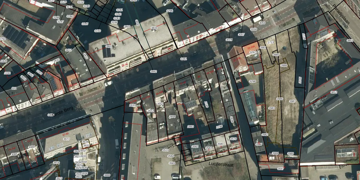 Het perceel waarop Grote Berg 43 staat heeft een oppervlakte van 481 m². Dit is een groot perceel. De perceeloppervlakte wordt geregistreerd door het Kadaster. Gedetailleerde informatie over de maten van dit perceel kunt u vinden in het rapport Kadastrale kaart met maatvoering van Grote Berg 43.