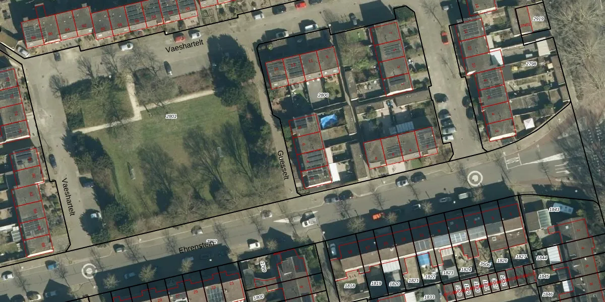 Het adres ligt op het perceel GTL01-B-2800, dat zich in de kadastrale gemeente Gestel bevindt. De oppervlakte van het perceel is 2690 m². Dat is groter dan gemiddeld in Gestel, waar de gemiddelde perceeloppervlakte op 1012,4 m² ligt. Het grootste perceel in de kadastrale gemeente is 73,6 ha. Het kleinste perceel heeft een oppervlakte van 0 m². Er zijn 16 adressen aanwezig op het perceel. In de Basisregistratie Kadaster (BRK) werden de grenzen van het perceel geregistreerd op 26-07-2006.