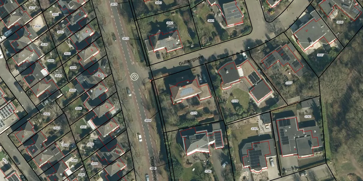 Het perceel waarop Gulbergsven 43 staat heeft een oppervlakte van 965 m². Dit is een groot perceel. De perceeloppervlakte wordt geregistreerd door het Kadaster. Gedetailleerde informatie over de maten van dit perceel kunt u vinden in het rapport Kadastrale kaart met maatvoering van Gulbergsven 43.