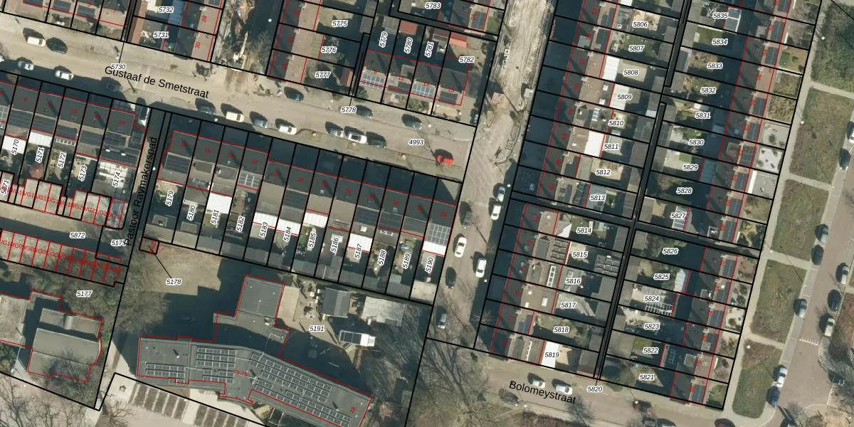 Het perceel waarop Gustaaf de Smetstraat 36 staat heeft een oppervlakte van 171 m². Dit is een middelgroot perceel. De perceeloppervlakte wordt geregistreerd door het Kadaster. Gedetailleerde informatie over de maten van dit perceel kunt u vinden in het rapport Kadastrale kaart met maatvoering van Gustaaf de Smetstraat 36.