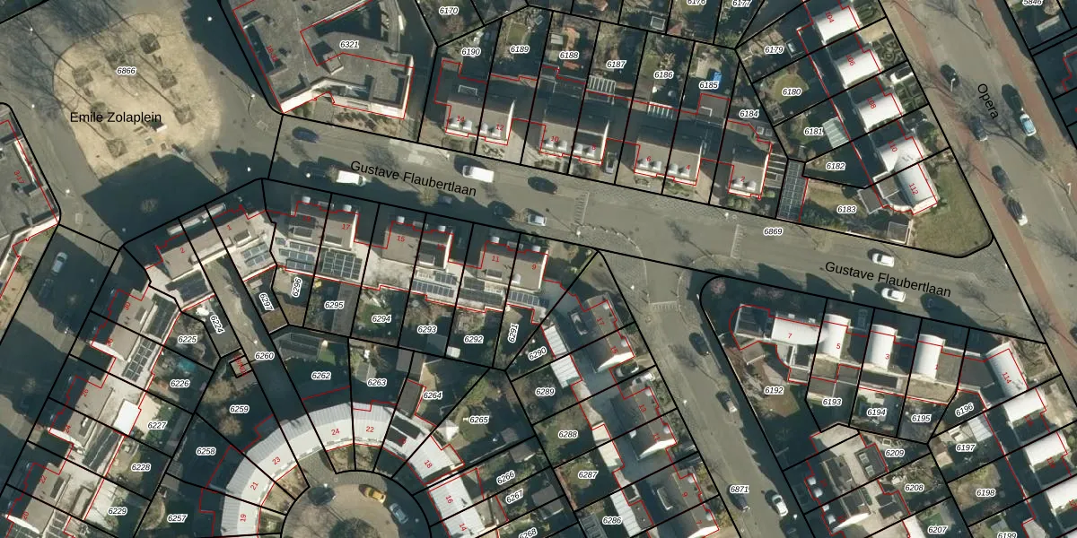 Gustave Flaubertlaan 9 is gelegen op kadastraal perceel WSL01W6291. Deze kadastrale aanduiding is uniek en wordt gebruikt door het Kadaster om eigendomsrechten en andere zakelijke rechten vast te leggen. Het perceel maakt onderdeel uit van de kadastrale gemeente Woensel.