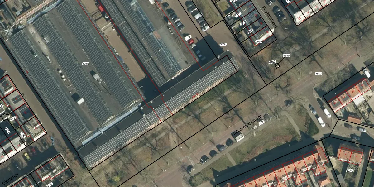 Het perceel waarop Halvemaanstraat 20 staat heeft een oppervlakte van 9125 m². Dit is een zeer groot perceel. De perceeloppervlakte wordt geregistreerd door het Kadaster. Gedetailleerde informatie over de maten van dit perceel kunt u vinden in het rapport Kadastrale kaart met maatvoering van Halvemaanstraat 20.