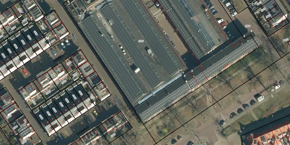 Het perceel waarop Halvemaanstraat 30 staat heeft een oppervlakte van 9125 m². Dit is een zeer groot perceel. De perceeloppervlakte wordt geregistreerd door het Kadaster. Gedetailleerde informatie over de maten van dit perceel kunt u vinden in het rapport Kadastrale kaart met maatvoering van Halvemaanstraat 30.