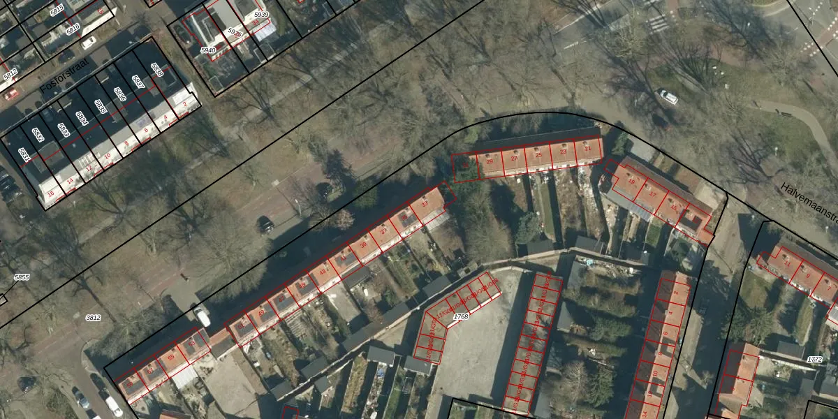 Het perceel waarop Halvemaanstraat 33 staat heeft een oppervlakte van 8025 m². Dit is een zeer groot perceel. De perceeloppervlakte wordt geregistreerd door het Kadaster. Gedetailleerde informatie over de maten van dit perceel kunt u vinden in het rapport Kadastrale kaart met maatvoering van Halvemaanstraat 33.