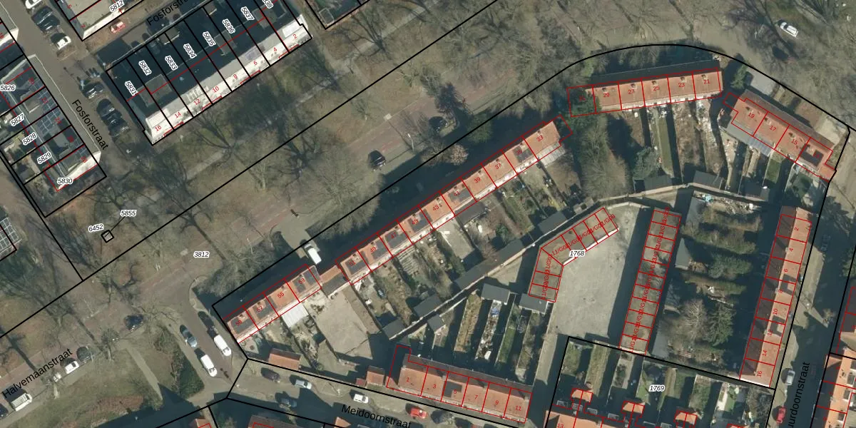 Het perceel waarop Halvemaanstraat 43 staat heeft een oppervlakte van 8025 m². Dit is een zeer groot perceel. De perceeloppervlakte wordt geregistreerd door het Kadaster. Gedetailleerde informatie over de maten van dit perceel kunt u vinden in het rapport Kadastrale kaart met maatvoering van Halvemaanstraat 43.