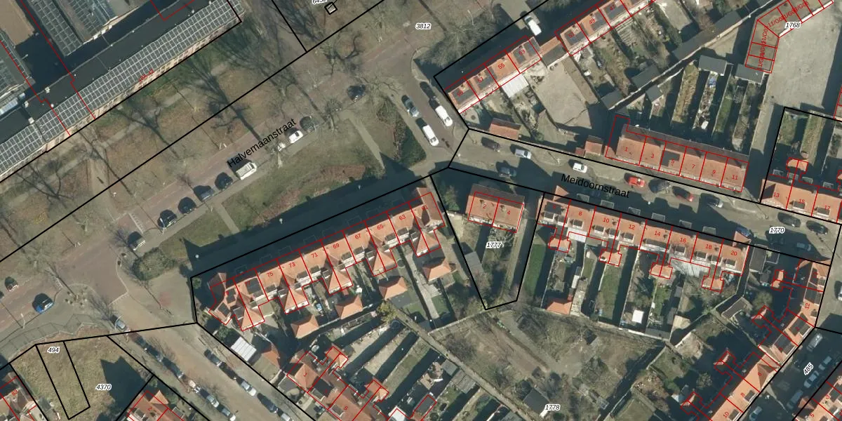 Het perceel waarop Halvemaanstraat 61 staat heeft een oppervlakte van 8552 m². Dit is een zeer groot perceel. De perceeloppervlakte wordt geregistreerd door het Kadaster. Gedetailleerde informatie over de maten van dit perceel kunt u vinden in het rapport Kadastrale kaart met maatvoering van Halvemaanstraat 61.