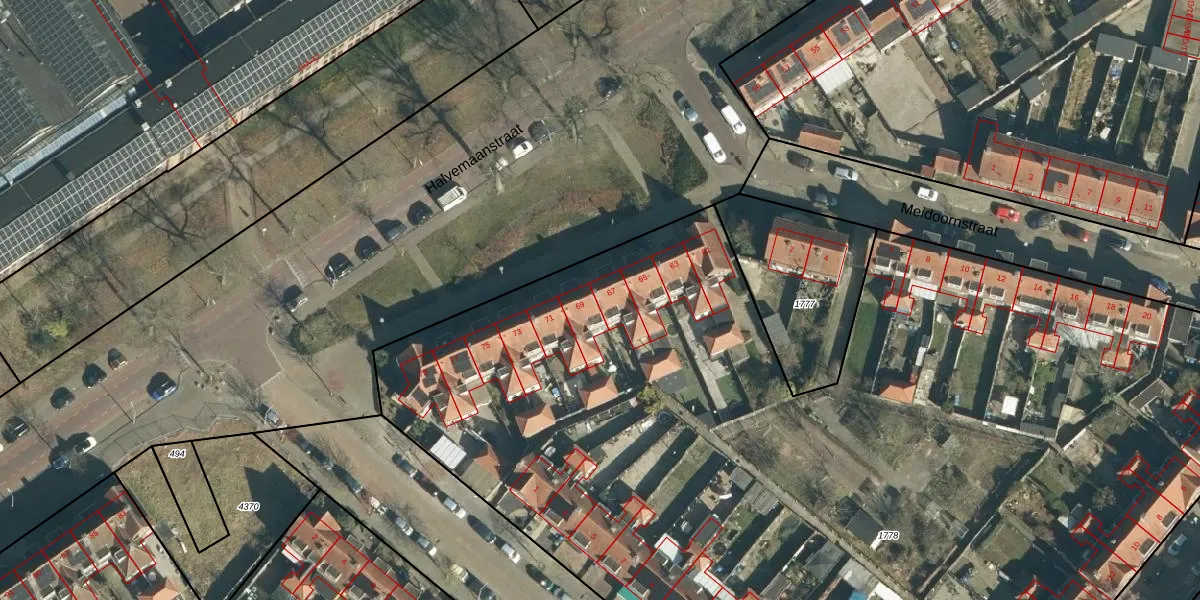 Het perceel waarop Halvemaanstraat 67 staat heeft een oppervlakte van 8552 m². Dit is een zeer groot perceel. De perceeloppervlakte wordt geregistreerd door het Kadaster. Gedetailleerde informatie over de maten van dit perceel kunt u vinden in het rapport Kadastrale kaart met maatvoering van Halvemaanstraat 67.