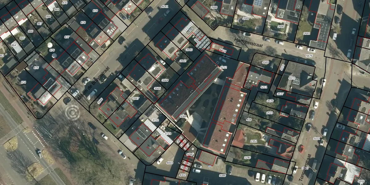 Het perceel waarop Hamsterstraat 6-22 staat heeft een oppervlakte van 1845 m². Dit is een zeer groot perceel. De perceeloppervlakte wordt geregistreerd door het Kadaster. Gedetailleerde informatie over de maten van dit perceel kunt u vinden in het rapport Kadastrale kaart met maatvoering van Hamsterstraat 6-22.