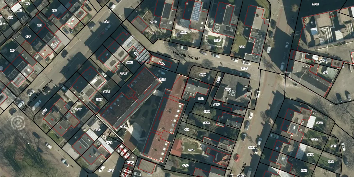Het perceel waarop Hamsterstraat 8-21 staat heeft een oppervlakte van 1845 m². Dit is een zeer groot perceel. De perceeloppervlakte wordt geregistreerd door het Kadaster. Gedetailleerde informatie over de maten van dit perceel kunt u vinden in het rapport Kadastrale kaart met maatvoering van Hamsterstraat 8-21.