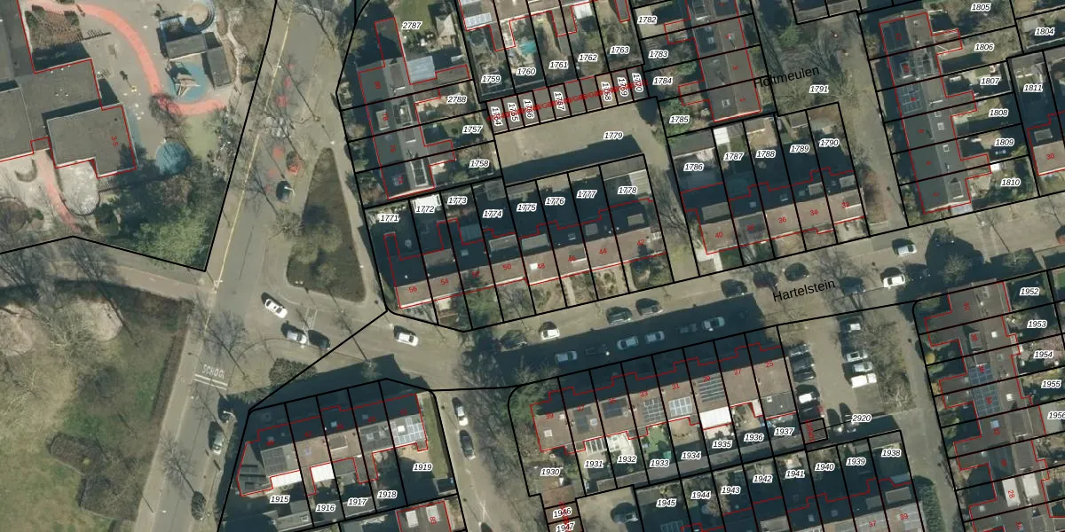Gebruik de zoekbalk of klik op een perceel voor informatie over de adressen binnen dit perceel.