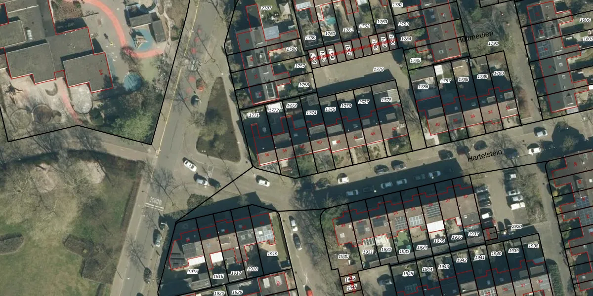 Het perceel waarop Hartelstein 52 staat heeft een oppervlakte van 162 m². Dit is een middelgroot perceel. De perceeloppervlakte wordt geregistreerd door het Kadaster. Gedetailleerde informatie over de maten van dit perceel kunt u vinden in het rapport Kadastrale kaart met maatvoering van Hartelstein 52.