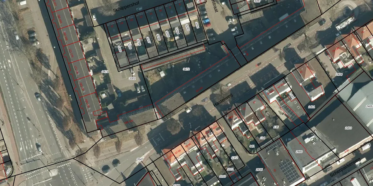 Hastelweg 100 is gelegen op kadastraal perceel STR03D3472. Deze kadastrale aanduiding is uniek en wordt gebruikt door het Kadaster om eigendomsrechten en andere zakelijke rechten vast te leggen. Het perceel maakt onderdeel uit van de kadastrale gemeente Strijp.