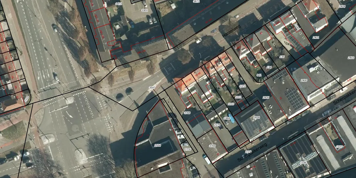 Het perceel waarop Hastelweg 101 staat heeft een oppervlakte van 374 m². Dit is een groot perceel. De perceeloppervlakte wordt geregistreerd door het Kadaster. Gedetailleerde informatie over de maten van dit perceel kunt u vinden in het rapport Kadastrale kaart met maatvoering van Hastelweg 101.