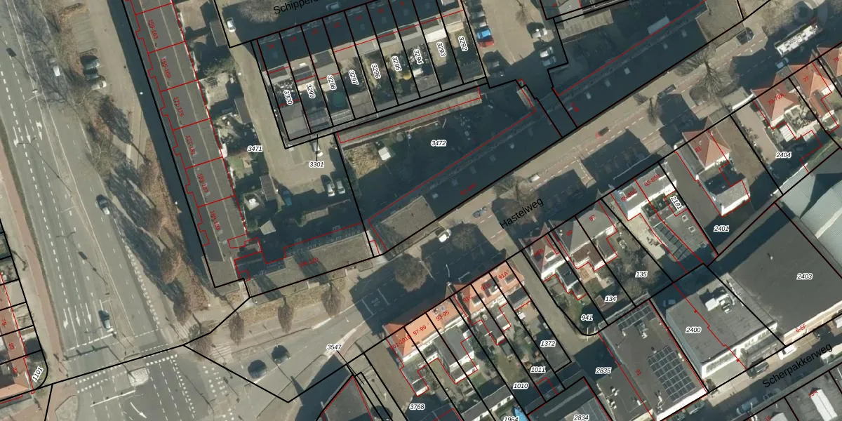 Hastelweg 102 is gelegen op kadastraal perceel STR03D3472. Deze kadastrale aanduiding is uniek en wordt gebruikt door het Kadaster om eigendomsrechten en andere zakelijke rechten vast te leggen. Het perceel maakt onderdeel uit van de kadastrale gemeente Strijp.