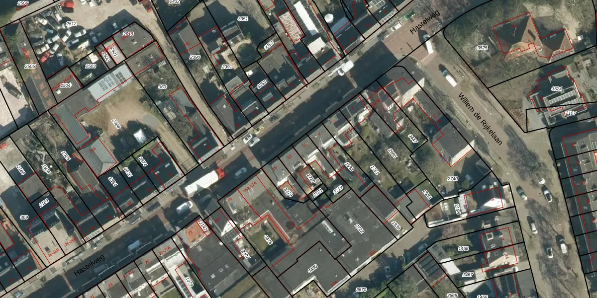 Hastelweg 11 is gelegen op kadastraal perceel STR03D2719. Deze kadastrale aanduiding is uniek en wordt gebruikt door het Kadaster om eigendomsrechten en andere zakelijke rechten vast te leggen. Het perceel maakt onderdeel uit van de kadastrale gemeente Strijp.