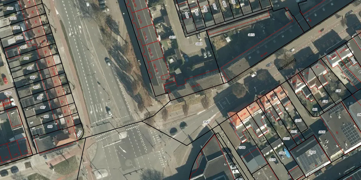 Hastelweg 116 is gelegen op kadastraal perceel STR03D3471. Deze kadastrale aanduiding is uniek en wordt gebruikt door het Kadaster om eigendomsrechten en andere zakelijke rechten vast te leggen. Het perceel maakt onderdeel uit van de kadastrale gemeente Strijp.