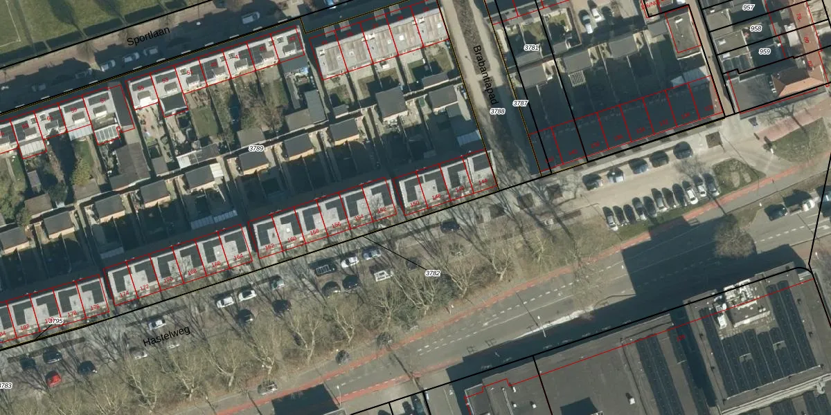 Hastelweg 150 is gelegen op kadastraal perceel STR03D3789. Deze kadastrale aanduiding is uniek en wordt gebruikt door het Kadaster om eigendomsrechten en andere zakelijke rechten vast te leggen. Het perceel maakt onderdeel uit van de kadastrale gemeente Strijp.